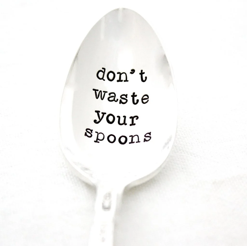 Are you familiar with the spoon theory? It is a wonderful explanation for family and friends when dealing with any illness, chronic or invisible. A useful form of communication to use with those whom you have shared the theory with. An analogy that can help people better understand and empathize with the impact of dealing with an illness. "Running low on spoons", or "I am out of spoons today," are great terms of reference.
